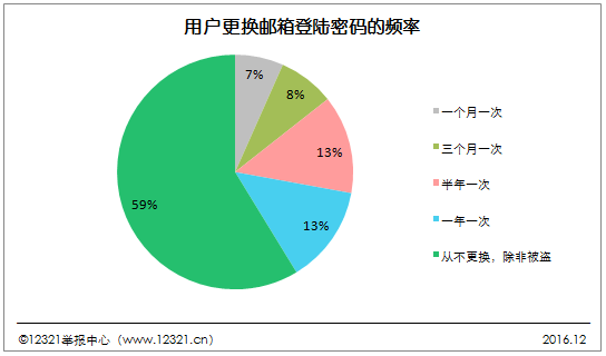 窗口將于5秒鐘后關(guān)閉12321舉報(bào)中心在2016下半年垃圾郵件調(diào)查中顯示:高達(dá)59%的用戶郵箱登陸密碼“從不更換,除非被盜”。13%的用戶半年更換一次。13%的用戶一年更換一次。僅7%的用戶一個(gè)月更換一次。12321舉報(bào)中心建議用戶經(jīng)?;蚨ㄆ诟鼡Q郵箱密碼,用字母、符號(hào)、數(shù)字10位以上的組合方式設(shè)置,且不要在不同網(wǎng)站使用相同的賬號(hào)和密碼,避免被黑客通過(guò)獲取用戶在A網(wǎng)站的賬戶從而嘗試登錄B網(wǎng)站的撞庫(kù)攻擊現(xiàn)象發(fā)生。在電子郵件已被各類(lèi)網(wǎng)絡(luò)應(yīng)用廣泛使用的情況下,郵件密碼被盜往往會(huì)造成微信、支付寶等安全隱患。