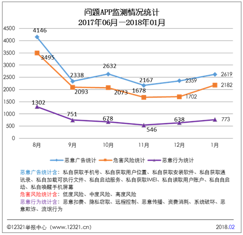 1月,12321舉報中心聯合百家應用商店下架處置惡意APP 185款。