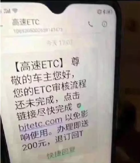 最近不少辦了ETC的車主接收到了號稱高速ETC的短信,短信上稱ETC審核流程未完成,如需完成需點擊相關網頁鏈接。