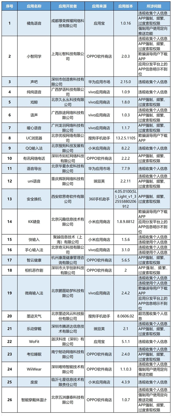 針對近期社會關注的麥克風、通訊錄、相冊權限問題,依據《網絡安全法》《電信條例》《電信和互聯網用戶個人信息保護規定》等法律法規,結合《關于開展縱深推進APP侵害用戶權益專項整治行動的通知》(工信部信管函〔2020〕164號),我部組織第三方檢測機構對手機應用軟件進行檢查,督促存在問題的企業進行整改。截至目前,尚有26款APP未完成整改(詳見附件),上述APP應在2月10日前完成整改落實工作。逾期不整改的,我部將依法依規組織開展相關處置工作。